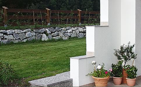 und Pflasterarbeiten wurden von uns durchgeführt. Auch die schöne Natursteinmauer im Garten wurde von uns errichtet.